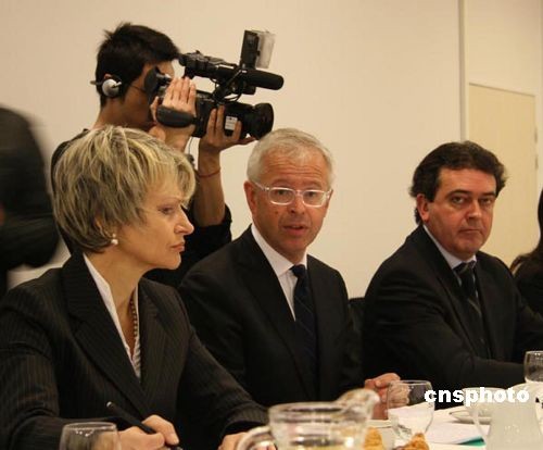 當(dāng)?shù)貢r(shí)間2月22日,經(jīng)過(guò)長(zhǎng)時(shí)間的沉默,法國(guó)巴黎老佛爺百貨公司舉行中國(guó)媒體見(jiàn)面會(huì),就11日發(fā)生在老佛爺?shù)囊蛩^“偽鈔”而侵害中國(guó)游客的事件公開(kāi)向當(dāng)事人、中國(guó)游客和中國(guó)人民道歉。圖為老佛爺百貨高層22日召開(kāi)中國(guó)媒體見(jiàn)面會(huì),該商場(chǎng)集團(tuán)執(zhí)行總裁保羅·德拉伍特(中)宣讀了道歉信。中新社發(fā) 鐘誠(chéng) 攝