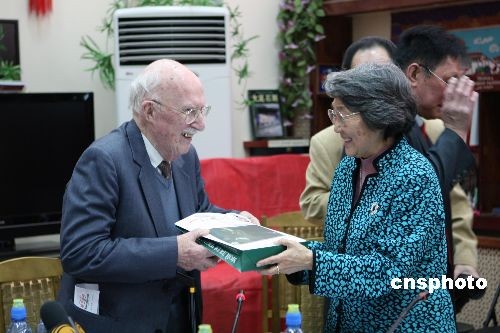 3月24日,俄中友協(xié)在莫斯科舉辦紀(jì)念周恩來誕辰110周年活動(dòng)。圖為周恩來的侄女、原中國新聞社副社長(zhǎng)周秉德向俄中友協(xié)名譽(yù)主席、著名漢學(xué)家齊赫文斯基贈(zèng)送自己撰寫的《我的伯父周恩來》一書俄文版。齊赫文斯基在1949年前后擔(dān)任蘇聯(lián)駐北平(京)總領(lǐng)事,見證了中蘇建交的歷史。中新社發(fā) 田冰 攝