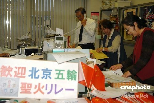 4月24日下午,長野縣日中友好協(xié)會(huì)辦公室內(nèi)工作人員在為迎接圣火做最后的準(zhǔn)備工作。長野縣日中友好協(xié)會(huì)會(huì)員近萬名,遍及全縣各個(gè)地區(qū),是日本影響力最大的日中友好協(xié)會(huì)之一。為了迎接北京奧運(yùn)圣火的到來,他們做了大量細(xì)致的籌備工作。中新社發(fā) 朱沿華 攝