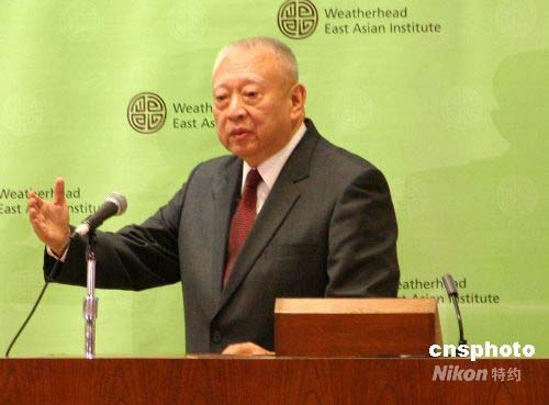 中國(guó)全國(guó)政協(xié)副主席董建華25日在紐約出席哥倫比亞大學(xué)“第四屆中國(guó)問(wèn)題座談會(huì)”時(shí)指出,中美雙方應(yīng)立即行動(dòng),致力于塑造一個(gè)新的健康、穩(wěn)定、合作的中美關(guān)系,這才是兩國(guó)人民的共同利益所在。中新社發(fā) 李靜 攝