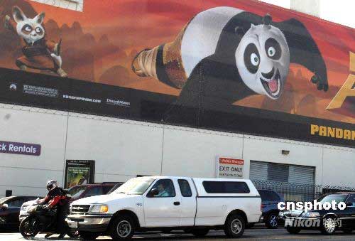 五月初,洛杉磯街頭出現(xiàn)動畫片《功夫熊貓》的大型宣傳廣告。由“夢工場”出品的好萊塢武打動畫片《功夫熊貓》將于六月六日在北美首映。該片中國味十足,杰克·布萊克、達斯汀·霍夫曼、成龍等著名影星擔綱英文版配音。制片商希望該片能成為《史萊克》系列之后的又一部締造票房奇跡的動畫片。中新社發(fā) 張煒 攝