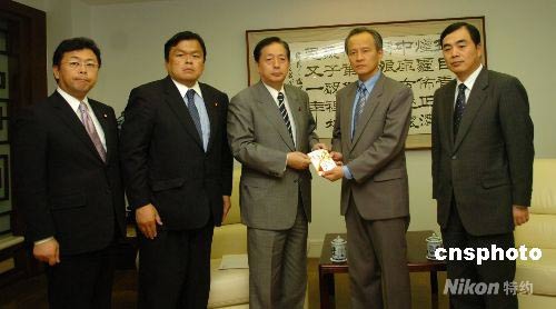 5月13日下午,日本執(zhí)政黨之一的公明黨黨首太田昭宏來到中國駐日使館向四川地震災(zāi)區(qū)捐贈五十萬日元善款。中國駐日大使崔天凱、公使孔鉉佑代表中國政府接受了公明黨的捐贈。中新社發(fā) 朱沿華 攝