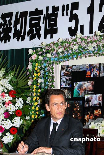 薩科奇前往中國(guó)駐法大使館悼念中國(guó)地震遇難者