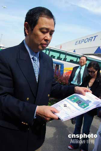 當(dāng)?shù)貢r(shí)間5月24日,法國首批救災(zāi)帳篷啟運(yùn)中國,支持汶川地震災(zāi)區(qū)。首批大型帳篷共44頂,由中國駐法使館聯(lián)絡(luò)、法國賽峰集團(tuán)贊助,中國國航免費(fèi)承運(yùn)。圖為中國駐法大使孔泉在巴黎戴高樂機(jī)場展示帳篷式樣。中新社發(fā) 吳衛(wèi)中 攝