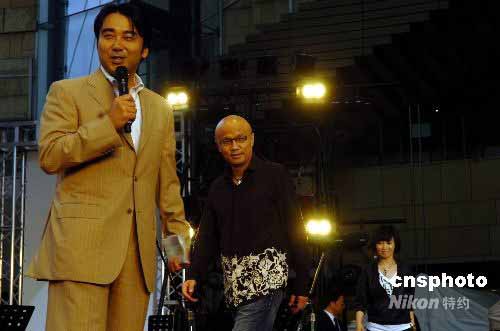 5月25日傍晚,中日兩國(guó)著名歌手齊聚東京六本木新城為四川地震災(zāi)區(qū)舉行露天賑災(zāi)演唱會(huì)。著名歌手孫國(guó)慶、斯琴格日勒、黃悅專程從中國(guó)趕到東京參加演出,感謝地震以來日本各界給予中國(guó)的支持與幫助。圖為孫國(guó)慶、斯琴格日勒在義演現(xiàn)場(chǎng)。中新社發(fā) 朱沿華 攝
