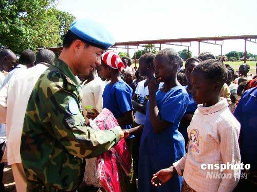 中國赴蘇丹維和工程兵向當(dāng)?shù)貎和I(xiàn)愛心
