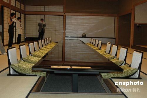 6月26日至27日將在京都迎賓館舉行“G8京都外長會(huì)議”,位于京都市中心上京區(qū)京都御所旁的京都迎賓館內(nèi)部已裝飾一新。這次會(huì)議與5月底和6月中旬召開的“G8神戶環(huán)境部長會(huì)議”、“G8大阪財(cái)長會(huì)議”一起,屬于北海道洞爺湖G8峰會(huì)的準(zhǔn)備會(huì)議。該賓館占地約兩萬平方米,是京都御苑的一部分。御苑曾經(jīng)是皇宮的所在地。中新社發(fā) 關(guān)妍 攝