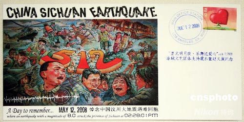 洛杉磯華人發(fā)行紀念“5.12”遇難同胞首日封