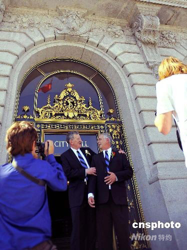 九月二十九日是美國舊金山同性戀伴侶麥卡弗和德斯勒相愛三十年的日子。三十年前的今天,他們在香港度蜜月。三十年后他們在舊金山市政府領(lǐng)取了結(jié)婚證書。加州最高法院裁定二00八年六月十六日是同性戀婚姻合法化的日子,但加州選民將在十一月再次對同性戀婚姻進行投票表決。中新社發(fā) 陳鋼 攝