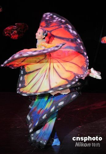 圖為中國殘疾人藝術(shù)團(tuán)團(tuán)長邰麗華主演舞劇“化蝶”。