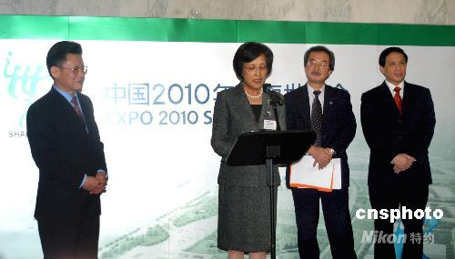 當(dāng)?shù)貢r(shí)間十月六日,“上海世博會(huì)聯(lián)合國(guó)圖片展”在紐約聯(lián)合國(guó)總部開幕。上海世博會(huì)執(zhí)委員常務(wù)副主任鐘燕群(中)介紹上海世博會(huì)籌備情況。聯(lián)合國(guó)副秘書長(zhǎng)沙祖康(左)、副秘書長(zhǎng)赤阪清隆(右二)和中國(guó)常駐聯(lián)合國(guó)代表張業(yè)遂出席開幕式(右)。該圖片展由上海世博會(huì)事務(wù)協(xié)調(diào)局、中國(guó)常駐聯(lián)合國(guó)代表團(tuán)和上海市對(duì)外文化交流協(xié)會(huì)共同舉辦。中新社發(fā) 汪晨 攝