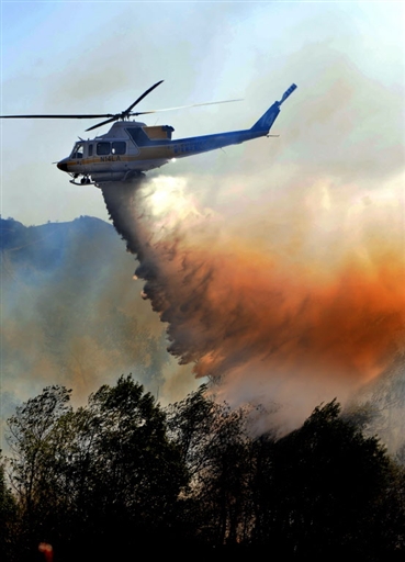圖為直升機(jī)在空中進(jìn)行滅火工作。