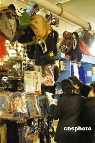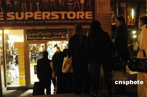 10月31日是西方傳統(tǒng)的“鬼節(jié)”萬圣節(jié)。30日晚,在曼哈頓三十八街與三大道交界,一家專售萬圣節(jié)服裝的商店外,紐約市民連夜排隊購置“鬼裝”,為萬圣節(jié)狂歡做準(zhǔn)備。商家也不失時機(jī)的打出“五折”字樣,希望在節(jié)日前賺個盆滿缽滿。盡管美國經(jīng)濟(jì)不景氣,仍沒有影響人們過萬圣節(jié)的好心情。中新社發(fā) 魏晞 攝