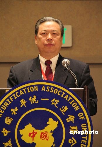 圖為全美中國和平統(tǒng)一促進(jìn)會成員與中國駐紐約總領(lǐng)事彭克玉、中國駐美大使館公使劉光源等合影留念。