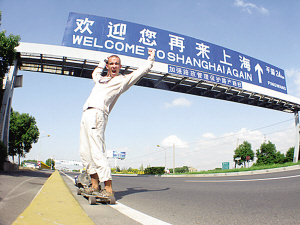 在來(lái)到瑞士之后,托馬遜感覺(jué)到騎車(chē)太乏味,于是靈光乍現(xiàn),決定用一塊4輪滑板代步。按照托馬遜的原計(jì)劃,他打算從英國(guó)直飛新西蘭回國(guó)?墒堑竭_(dá)英國(guó)后,他卻深深地迷戀上了滑板運(yùn)動(dòng),決定“一滑到底”。據(jù)了解,托馬遜每天背著15公斤重的背包,平均每天滑行5到7小時(shí),由于風(fēng)向和路況不同,每天行程60到120公里不等。結(jié)束了長(zhǎng)達(dá)7000公里的歐美之行后,他開(kāi)始朝著旅途的最后一站——中國(guó)進(jìn)發(fā)。他從哈薩克斯坦邊境滑進(jìn)中國(guó)境內(nèi)的新疆西北部,然后又經(jīng)過(guò)青藏高原,最后來(lái)到繁華的大上海。