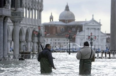 12月1日,由于海水上升,威尼斯城幾乎所有街道都被海水淹沒(méi),圣馬可廣場(chǎng)上的水深達(dá)80厘米。威尼斯當(dāng)局發(fā)出警報(bào),稱海水可能要比正常水位上升1.6米,水城威尼斯真的變成了“水城”。