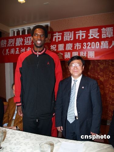 當(dāng)?shù)貢r(shí)間12月6日,重慶市副市長(zhǎng)譚棲偉率重慶市政府代表團(tuán)飛抵美國(guó)洛杉磯,受到洛杉磯僑界的熱烈歡迎,美國(guó)職業(yè)藍(lán)球NBA球星格林也趕來迎接中國(guó)客人,并與譚棲偉副市長(zhǎng)合影留念。中新社發(fā) 盧威 攝