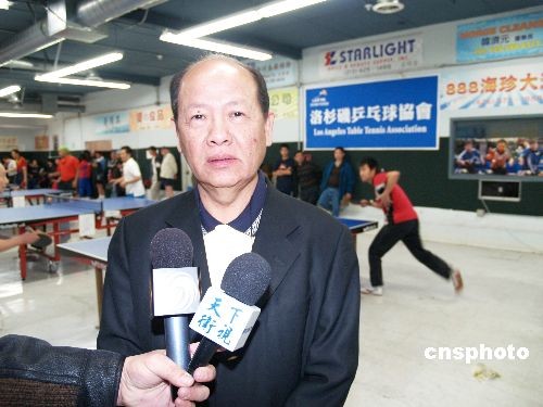12月28日,美國(guó)亞美體育協(xié)會(huì)和洛杉磯乒乓球協(xié)會(huì)主辦2008年 “團(tuán)結(jié)杯”乒乓球比賽開(kāi)賽,共有16支華人乒乓球隊(duì)、50余名選手參加逐角。美國(guó)亞美體育協(xié)會(huì)會(huì)長(zhǎng)呂詩(shī)澄向美國(guó)媒體介紹在海外推展乒乓球運(yùn)動(dòng)的體驗(yàn)。中新社發(fā) 盧威 攝