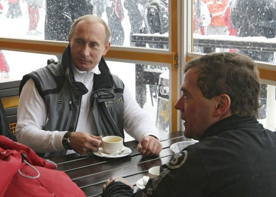 1月3日,在俄羅斯南部度假勝地索契的波利亞納滑雪場,俄總統(tǒng)梅德韋杰夫和總理普京一起喝茶。飲茶后,梅德韋杰夫起身結賬,普京緊跟在后,毫無掏錢意向。普京表示:“無論買什么東西都是總統(tǒng)付錢! 梅德韋杰夫則“大方”回應:“付賬是我的工作!