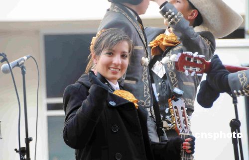 美國東部時間1月20日中午11點(diǎn)30分,美國第44任總統(tǒng)奧巴馬在國會山前宣誓就職。下午,官方組織的一場游行在著名的華盛頓賓夕法尼亞大街舉行。圖為奧巴馬就職日游行隊(duì)伍中的拉提琴的美少女。中新社發(fā) 邱江波 攝