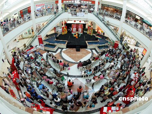 2009年1月28日,西澳大利亞華人在珀斯最大的商業(yè)城里搭臺(tái)表演中國(guó)文化,尤如嘉年華般熱鬧。中國(guó)駐珀斯總領(lǐng)館阮平副總領(lǐng)事到場(chǎng)發(fā)言并與當(dāng)?shù)毓賳T一起觀看了演出。中新社發(fā) 高周丹 攝