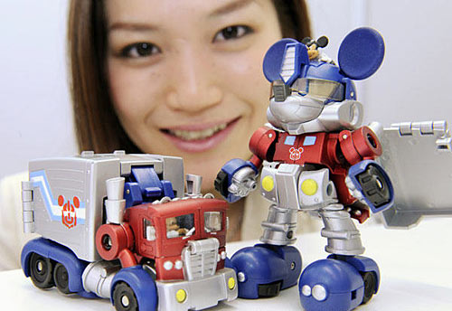 2月2日,在日本首都東京,Tomy玩具公司的一名員工展示“變形金剛”版的經(jīng)典動(dòng)畫角色米奇。這種“變形金剛”版米奇可以從一輛卡車變成米奇的樣子,有黑白和彩色兩款,將于2月26日上市。