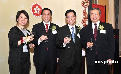 當?shù)貢r間2月4日,香港駐紐約經貿辦事處在華爾道夫酒店舉行新春招待會,中國常駐聯(lián)合國代表張業(yè)遂大使,中國駐紐約總領事彭克玉等四百多位來賓出席了招待會,香港特區(qū)駐美國總經貿專員唐智強發(fā)表講話,香港駐紐約經貿辦事處處長陳美嘉致新春賀詞。中新社發(fā) 龔文謨 攝