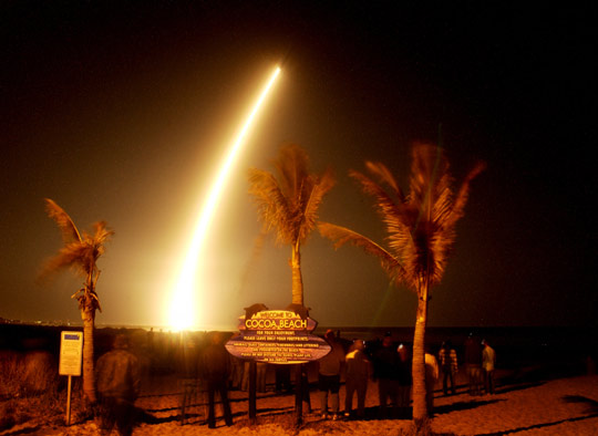 中新網(wǎng)3月7日電 美國東部時間6日22時50分,世界首個用于探測太陽系外類地行星的“開普勒”號太空望遠鏡在美國卡納維拉爾角空軍基地發(fā)射升空。圖為群眾正在觀看“開普勒”號升空的盛況。