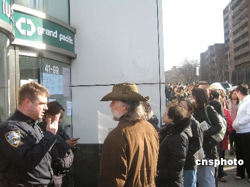 美國(guó)紐約華資背景的中國(guó)信托銀行紐約法拉盛分行,存放個(gè)人貴重物品的數(shù)十個(gè)保險(xiǎn)箱9日被盜。10日一早,大批華人憂心忡忡聚集在被盜銀行門(mén)前,希望了解具體情況。美國(guó)法律規(guī)定,保險(xiǎn)箱內(nèi)所存現(xiàn)金即便被盜也不獲賠付,很多華人一生積蓄恐因此付諸東流。中新社發(fā) 魏晞 攝