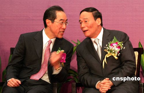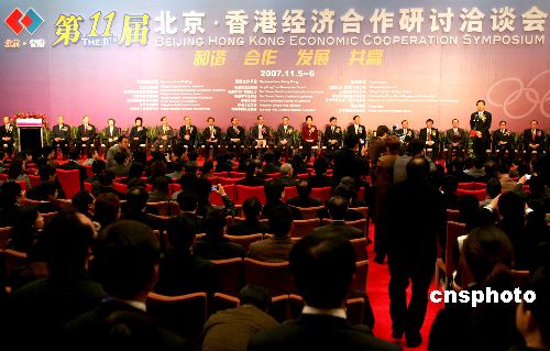 11月5日,第11屆北京·香港經(jīng)濟合作研討洽談會在北京舉行。北京市市長王岐山與香港政務(wù)司司長唐英年出席開幕式。中新社發(fā) 張宇 攝