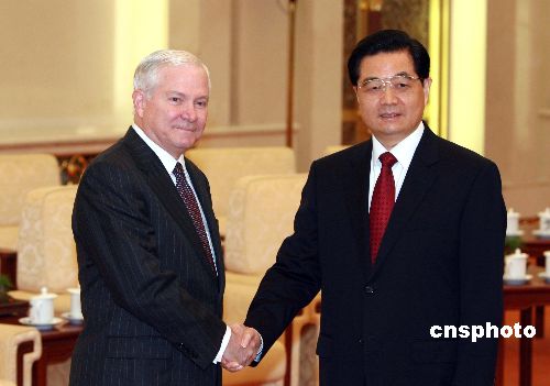 十一月六日,中國國家主席、中央軍委主席胡錦濤在北京人民大會堂會見美國國防部長羅伯特·蓋茨。中新社發(fā) 廖文靜 攝