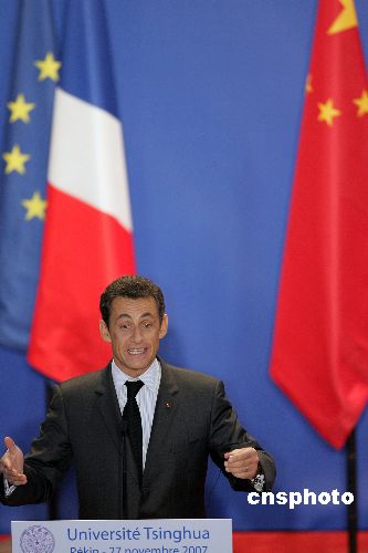 正在中國訪問的法國總統(tǒng)尼古拉·薩科齊,11月27日上午到中國著名學(xué)府清華大學(xué)發(fā)表演講,并接受學(xué)生提問。中新社發(fā) 任晨鳴 攝