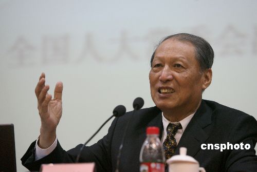 十一月二十八日,全國(guó)人大常委會(huì)副委員長(zhǎng)成思危為在北京為“第三期海外華文媒體高級(jí)研修班”學(xué)員做題為“中國(guó)當(dāng)前經(jīng)濟(jì)形勢(shì)”的報(bào)告。中新社發(fā) 張勤 攝