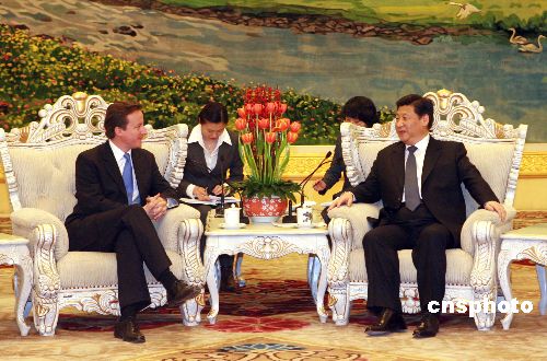 十二月十九日,中共中央政治局常委、書記處書記習近平在北京人民大會堂會見了由英國保守黨領袖戴維·卡梅倫率領的英國保守黨代表團。中新社發(fā) 廖文靜 攝