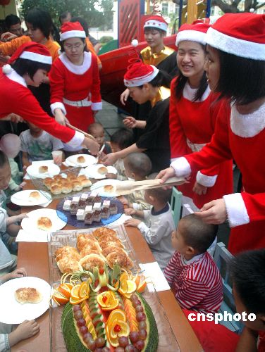 十二月二十一日,三亞凱萊度假酒店的圣誕天使們來到三亞福利院看望孤兒們,為他們送來食品和玩具。圣誕節(jié)將至,三亞一些企業(yè)或個人紛紛走進(jìn)福利院奉獻(xiàn)愛心,與這里的孩子們共享圣誕節(jié)的快樂。中新社發(fā) 尹海明 攝