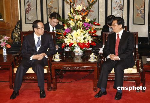 圖:胡錦濤會(huì)見(jiàn)日本首相福田康夫