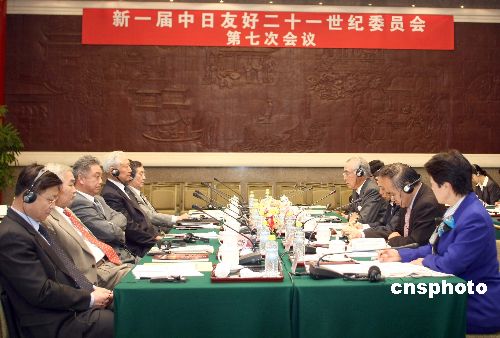 中日友好二十一世紀委員會第七次會議現(xiàn)場。