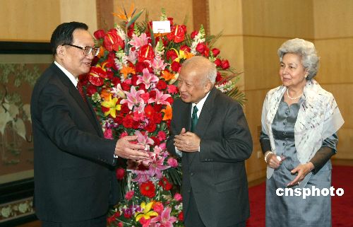 2月4日,受中國國家主席胡錦濤和國務(wù)院總理溫家寶的委托,國務(wù)委員唐家璇專程看望在北京的柬埔寨太皇諾羅敦·西哈努克和太后諾羅敦·莫尼列·西哈努克。中新社發(fā) 盛佳鵬 攝