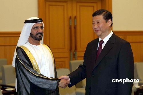 4月3日,中國國家副主席習近平在北京人民大會堂會見阿聯酋副總統(tǒng)兼總理、迪拜酋長穆罕默德。中新社發(fā) 盛佳鵬 攝