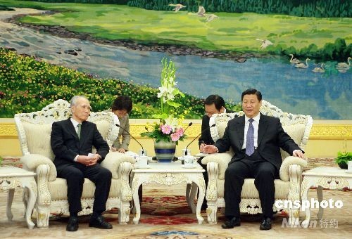 4月18日,中國國家副主席習(xí)近平在北京人民大會堂會見日本前首相村山富市。中新社發(fā) 廖文靜 攝