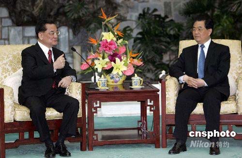 胡錦濤在京會見中國國民黨榮譽(yù)主席連戰(zhàn)