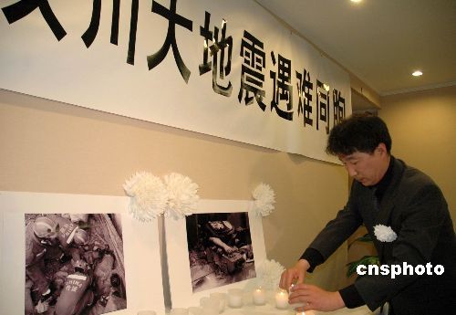 洛杉磯總領(lǐng)館設(shè)靈堂悼念汶川大地震遇難同胞