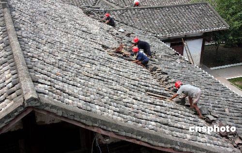 圖為施工隊(duì)伍正抓緊修復(fù)明月小學(xué)的部分教室。2008年5年12日四川汶川大地震波及華鎣市,震感強(qiáng)烈,致使該市學(xué)校大面積不同程度受災(zāi),據(jù)統(tǒng)計(jì),有11所學(xué)校受災(zāi),受損面積8200平方米,損失680萬余元,致使近1500名學(xué)生不能正常行課。災(zāi)情發(fā)生后,四川華鎣市委市政府立即組織市教育局和各學(xué)校迅速行動(dòng),啟動(dòng)了應(yīng)急預(yù)案,各級(jí)領(lǐng)導(dǎo)在第一時(shí)間分赴受災(zāi)學(xué)校指揮指導(dǎo)抗災(zāi)救災(zāi)工作,確保了師生生命財(cái)產(chǎn)安全,無一例地震傷亡事故發(fā)生;同時(shí),他們?cè)诮M織專家鑒定后,立即籌集資金,組織施工隊(duì)伍修復(fù)損壞不大的教室,使學(xué)生盡快復(fù)課。