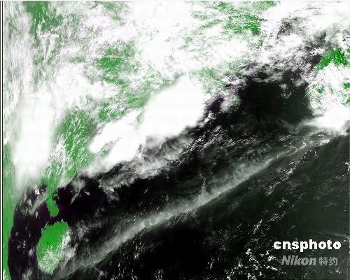 5月29日上午10點(diǎn)16分,廣州氣象衛(wèi)星地面站成功接收到第一幅風(fēng)云三號(hào)01星的HRPT(甚高分辨率)云圖,圖為該衛(wèi)星拍回的照片。中新社發(fā) 楊綺薇 攝