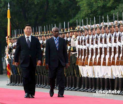 中國國家副主席習(xí)近平,6月10日在北京人民大會堂外廣場舉行儀式,歡迎蘇丹共和國副總統(tǒng)阿里·奧斯曼·穆罕默德·塔哈訪華。應(yīng)習(xí)近平邀請,蘇丹共和國副總統(tǒng)阿里·奧斯曼·穆罕默德·塔哈于6月9日至15日對中國進(jìn)行正式訪問。中新社發(fā) 任晨鳴 攝