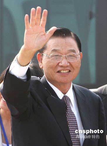 十一日下午三時(shí)十五分許,臺灣海峽交流基金會董事長江丙坤率;鶗韴F(tuán)抵達(dá)北京首都機(jī)場,向在場的中外媒體揮手致意。中新社發(fā) 趙振清 攝