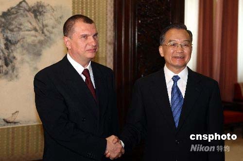 7月26日,中國(guó)國(guó)務(wù)院總理溫家寶在北京中南海紫光閣,會(huì)見俄羅斯副總理謝欽。中新社發(fā) 盛佳鵬 攝