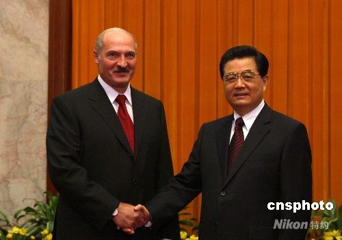 8月7日,中國國家主席胡錦濤在北京人民大會(huì)堂會(huì)見應(yīng)邀出席北京奧運(yùn)會(huì)開幕式的白俄羅斯總統(tǒng)盧卡申科。中新社發(fā) 廖文靜 攝