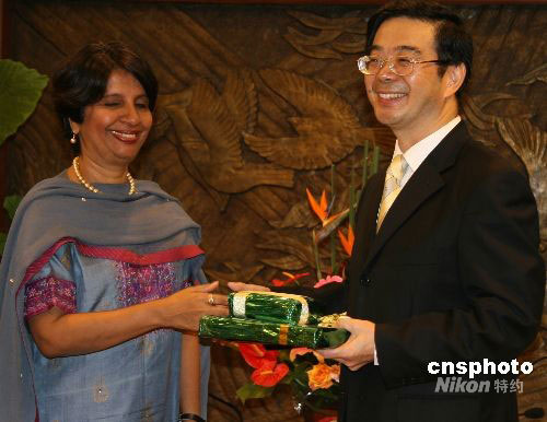 9月5日,印度駐華大使尼如帕瑪·拉奧琪(左)在長沙接受湖南省長周強會見時稱,希望通過加強兩地在經(jīng)貿(mào)、文化、環(huán)保以及青年交流等方面的合作,為中印兩國關系的友好持久發(fā)展注入強勁動力。中新社發(fā) 傅煜 攝