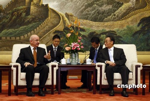 10月15日,中國全國人大常委會(huì)委員長吳邦國在北京人民大會(huì)堂會(huì)見瑞士聯(lián)邦議會(huì)國民院議長布永。中新社發(fā) 盛佳鵬 攝